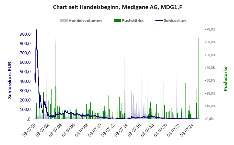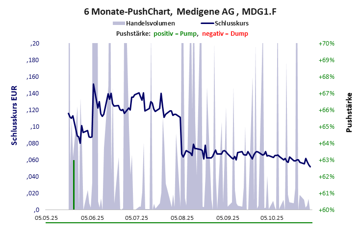 Unternehmenserfolg fehlt, schlechte Finanzdaten, Kursverfall trotz laufender Pushes. Medigene AG hat ein schlechtes Gesamtscoring und ist ein mickriger Pennystock mit praktisch einem Totalverlust. Das Gesamtvermögen ist überschaubar, die Vermögenswerte scheinen wenig werthaltig zu sein, der Umsatz ist überschaubar, die Ertragslage extrem verlustreich, die Geldverbrennung extrem hoch.