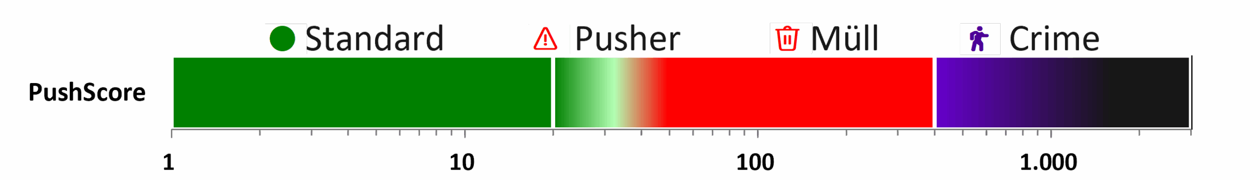 Was Du hier findest, ist ein Teil der derzeit meistgepushten Aktien. Wenn Du kein Zocker bist, dann lautet der gute Rat, bei diesen Aktien kein Geld anzulegen. Als Zocker kannst Du Dein Glück versuchen mit dem Risiko, einen kräftigen Verlust zu erleiden. Die Pushcharts ergeben – wenn man durch die Charts blättert – einen wunderbaren Einblick, was mit dem Aktienkurs getrieben wird. Wodurch ein Push ausgelöst wird, kann nicht benannt werden. Es kann sich um einen Aktienhype ebenso handeln wie um das gezielte Pushing durch Akteure und Pushermedien. Ein wesentliches Indiz, worum es sich handelt, liefert allerdings der PushScore. Je höher er ist, desto sicherer handelt es sich um gezieltes Pushing wertloser Aktien und somit um größtes Risiko.
