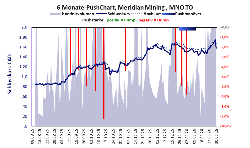 Die Pushstärke ist umso höher, je stärker die Kurse vom durchschnittlichen Verlauf abweichen und daher ein Verdacht auf Kursmanipulation besteht.