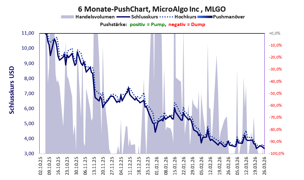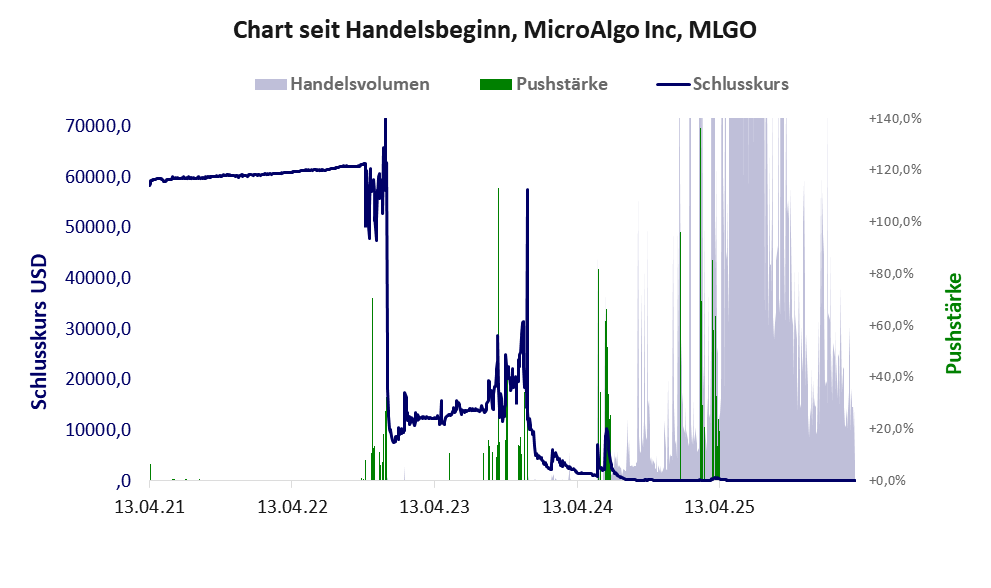 MicrAlgo zählt zu einer Gruppe chinesischer Firmen deren Aktien in den USA oder auf den Antillen beheimatet sind und die auf der Warnliste der BaFin stehen. Der Aktienkurs dieser Firmen zeigt schlagartig durchgeführte Dumps, mit denen die Anleger (oft in Chatgruppen organisiert) um ihr Geld betrogen wurden. Charakteristisch ist für die meisten dieser Firmen, dass ihr Scoring meist recht gut und einer der Gründe ist, Anleger erfolgreich hinter das Licht geführt zu haben. Die Pushstärke zeigt allerdings das Risiko auf. Die Geschichte, wie abgezockt wird, steht unter Am Handy abgezockt..