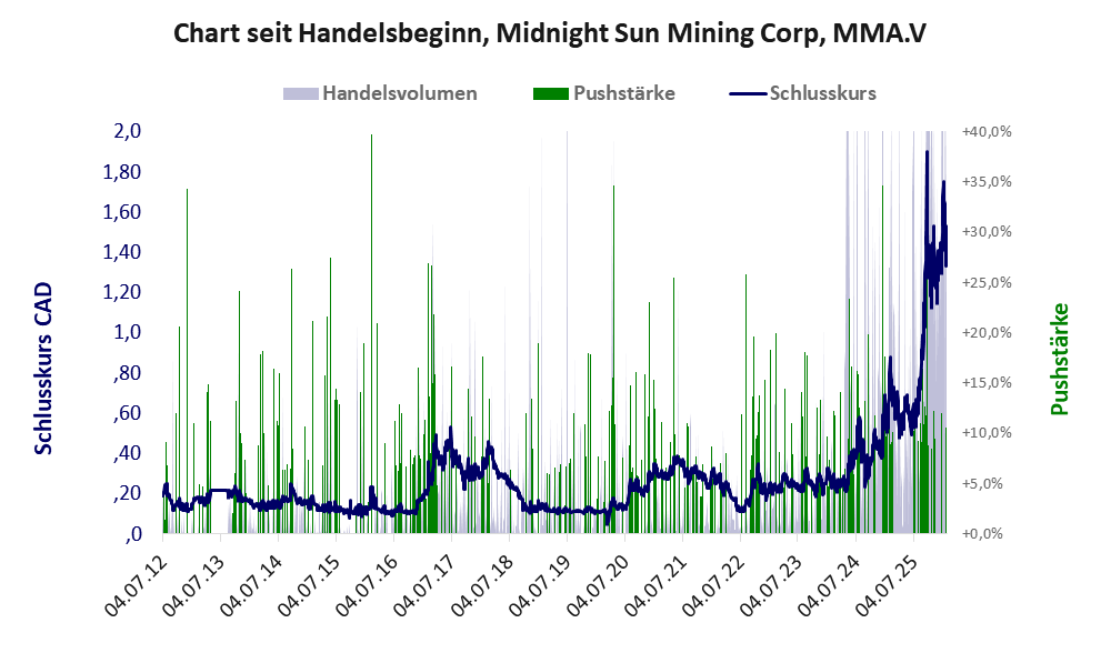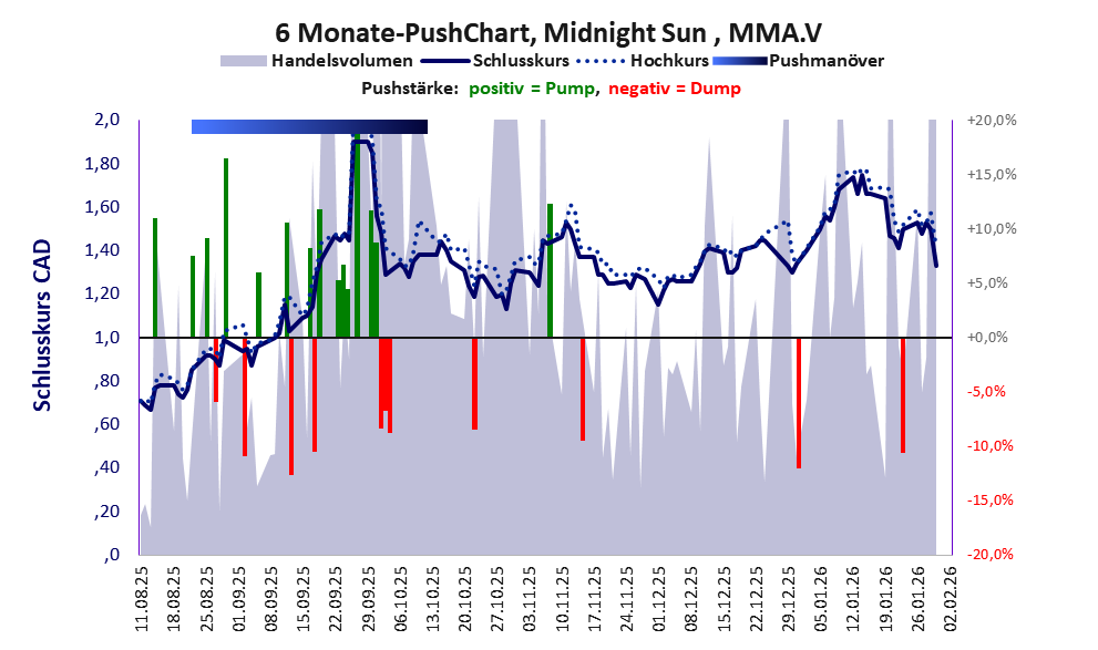 Die Pushstärke ist umso höher, je stärker die Kurse vom durchschnittlichen Verlauf abweichen und daher ein Verdacht auf Kursmanipulation besteht.