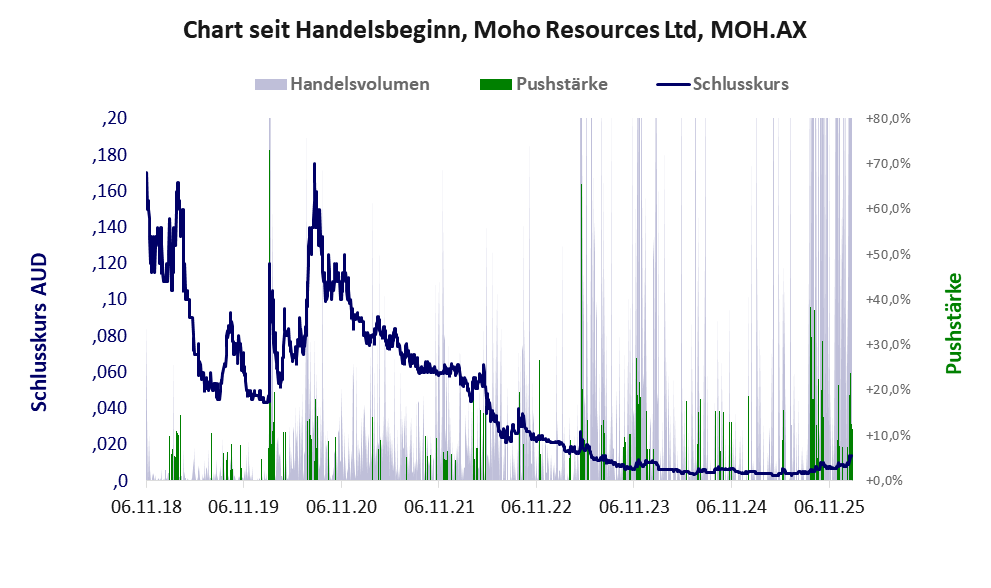 Moho Resources ist ein MiniKMU mit einer Pusher-Aktie der Klasse III und den Eckdaten: