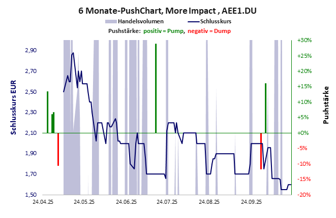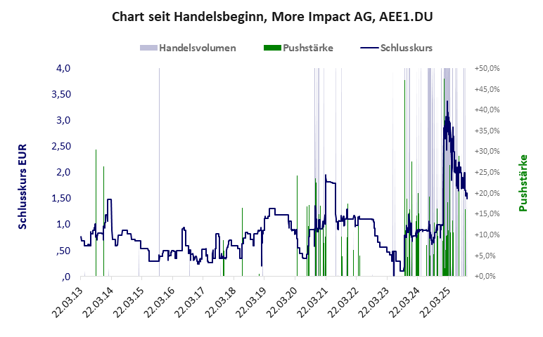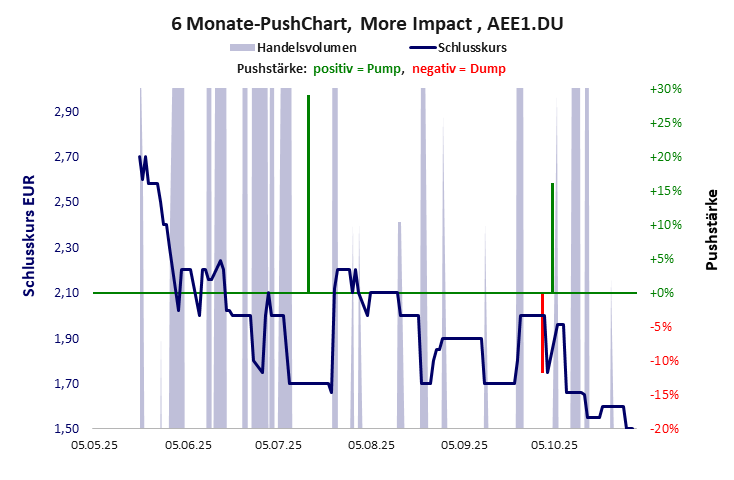 More Impact hat ein schwaches Gesamtscoring und ist eine billige Aktie mit Kursgewinn. Das Gesamtvermögen ist beträchtlich, die Vermögenswerte scheinen nicht vorhanden zu sein, der Umsatz ist nicht existent, die Ertragslage extrem verlustreich, die Geldverbrennung gering.