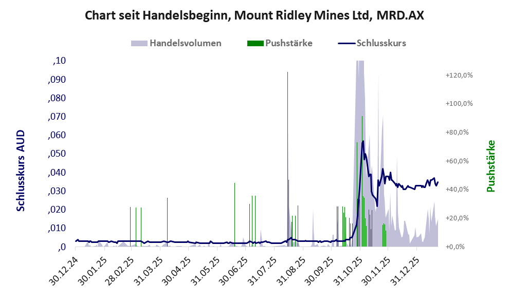 Mount Ridley ist ein Winzling mit einer Pusher-Aktie der Klasse III und den Eckdaten: