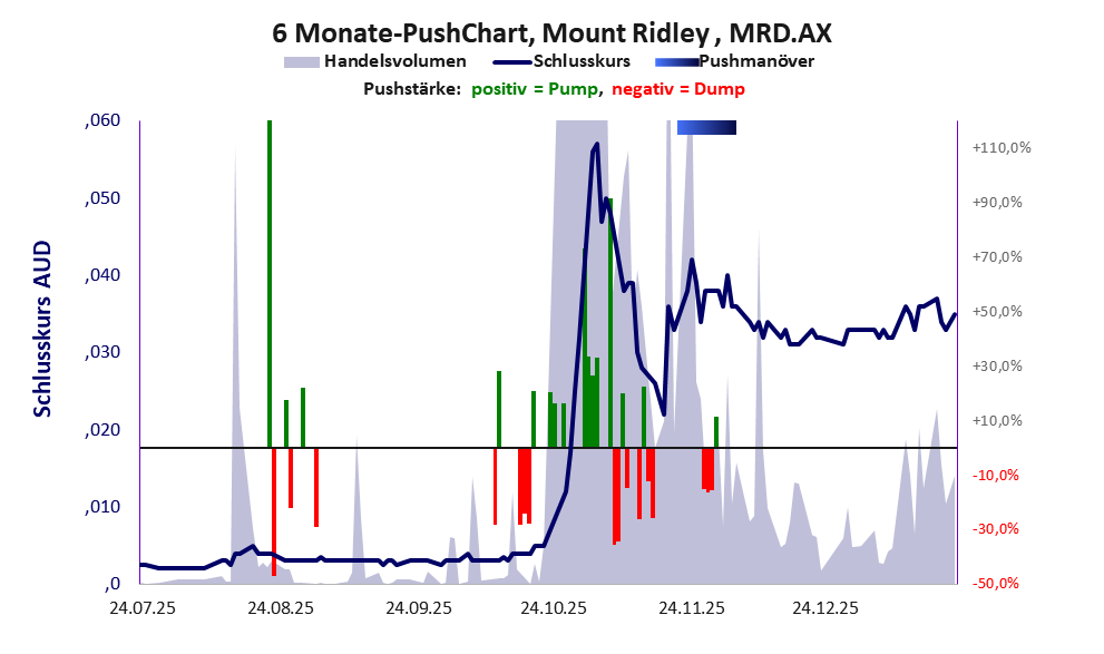 Die Pushstärke ist umso höher, je stärker die Kurse vom durchschnittlichen Verlauf abweichen und daher ein Verdacht auf Kursmanipulation besteht.