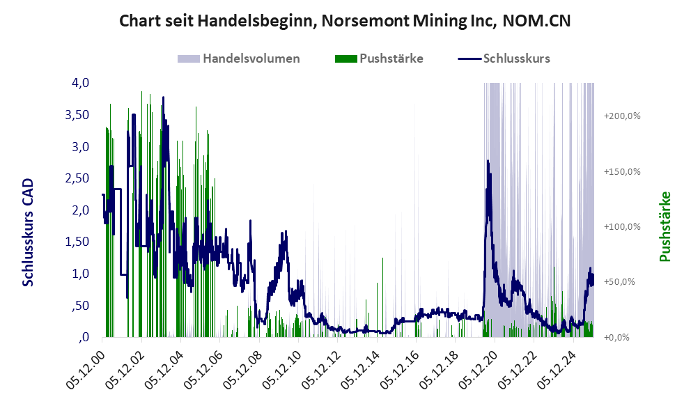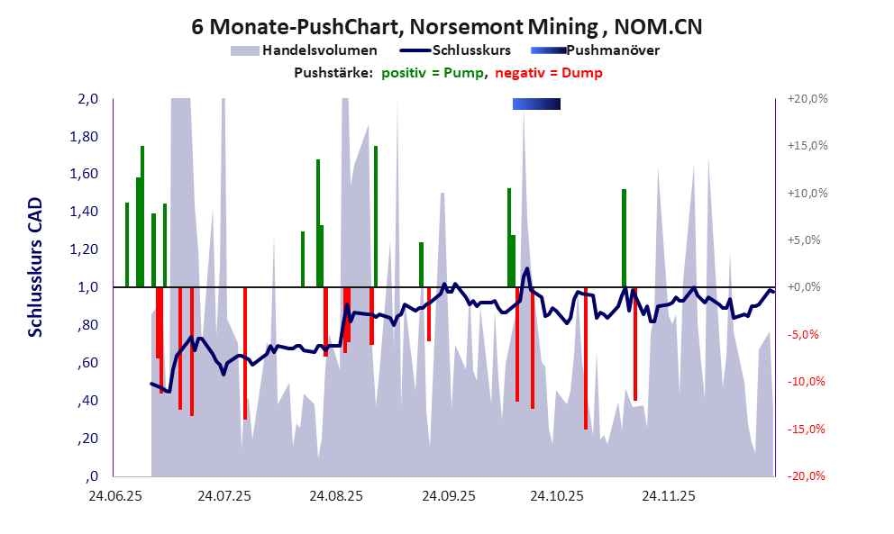 Vorrangiges Ziel scheint der Aktienhandel und nicht die Exploration zu sein. Sehr hohe Pushstärke.