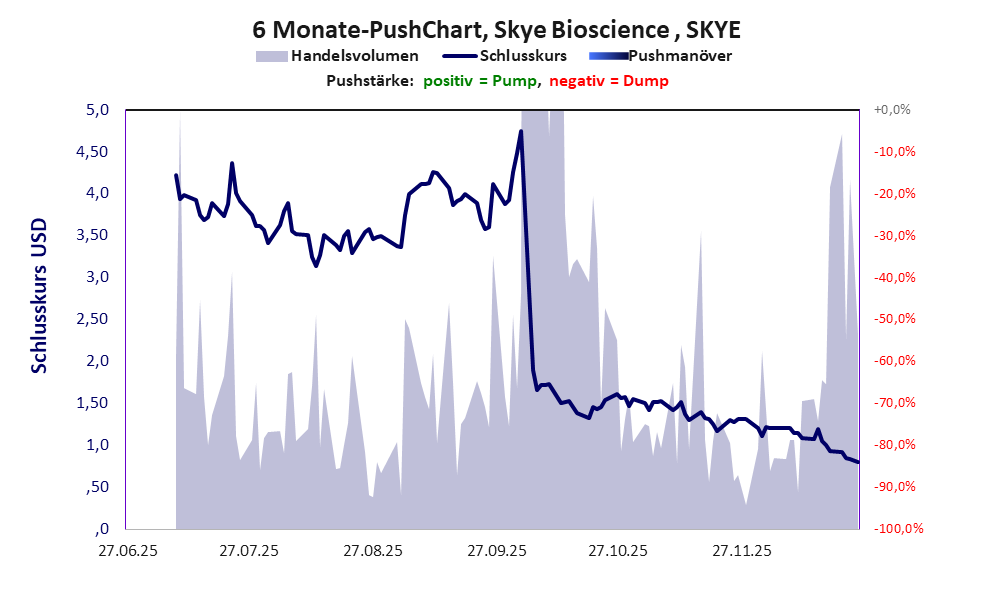 Dieser Aktie liegt das „Refreshmodell“ zu Grunde. Eine Durchsicht aller Geschäftsberichte würde recht sicher zeigen, dass das Unternehmen nie Umsatz und Profit erzielte und die gesamten Explorationskosten unter „Aktiva“ verbuchte. Das heißt, während aller Jahre wurde nichts gefunden, sondern die Investorengelder wurden für erfolglose Explorationsarbeiten verbrannt. Die bescheidene Exploration dient lediglich als Grundlage zur medialen Vermarktung von Erfolgsaussichten, auf eine große Lagerstätte zu stoßen, um damit das nächste Pushmanöver zu befeuern. Bei dieser Aktie liegt das „Inkassomodell“ vor, bei dem der Aktienkurs zu Beginn der Geschichte sein Allzeithoch hat. Die Akteure verkaufen schon zu Beginn nach und nach ihre billigst erworbenen Aktien, so dass der Kurs in verhältnismäßig kurzer Zeit abstürzt. Danach dümpelt der Aktienkurs in den meistn Fällen nahe null dahin und die Aktie dient nur noch kleineren, dennoch gewinnbringenden Pushmanövern und in vielen Fällen dem Algotrading. Dem ersten Einbruch nachfolgende größere Pushmanöver sind aber nicht ausgeschlossen. Bei dieser Aktie vollzogen die Akteure mindestens einen Pump & Dump und leerten damit ganz gezielt die Taschen der Anleger. Obwohl das Vorgehen rechtswidrig ist, erfolgt kaum je eine Strafverfolgung.