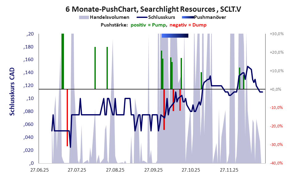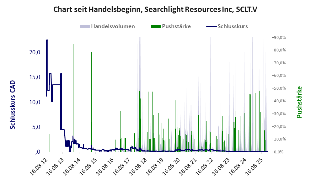 Bei dieser Aktie liegt das „Inkassomodell“ vor, bei dem der Aktienkurs zu Beginn der Geschichte sein Allzeithoch hat. Die Akteure verkaufen schon zu Beginn nach und nach ihre billigst erworbenen Aktien, so dass der Kurs in verhältnismäßig kurzer Zeit abstürzt. Danach dümpelt der Aktienkurs in den meistn Fällen nahe null dahin und die Aktie dient nur noch kleineren, dennoch gewinnbringenden Pushmanövern und in vielen Fällen dem Algotrading. Dem ersten Einbruch nachfolgende größere Pushmanöver sind aber nicht ausgeschlossen. Bei dieser Aktie vollzogen die Akteure mindestens einen Pump & Dump und leerten damit ganz gezielt die Taschen der Anleger. Obwohl das Vorgehen rechtswidrig ist, erfolgt kaum je eine Strafverfolgung.