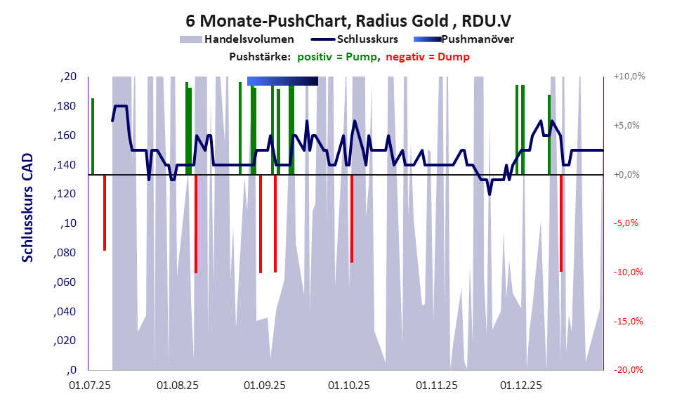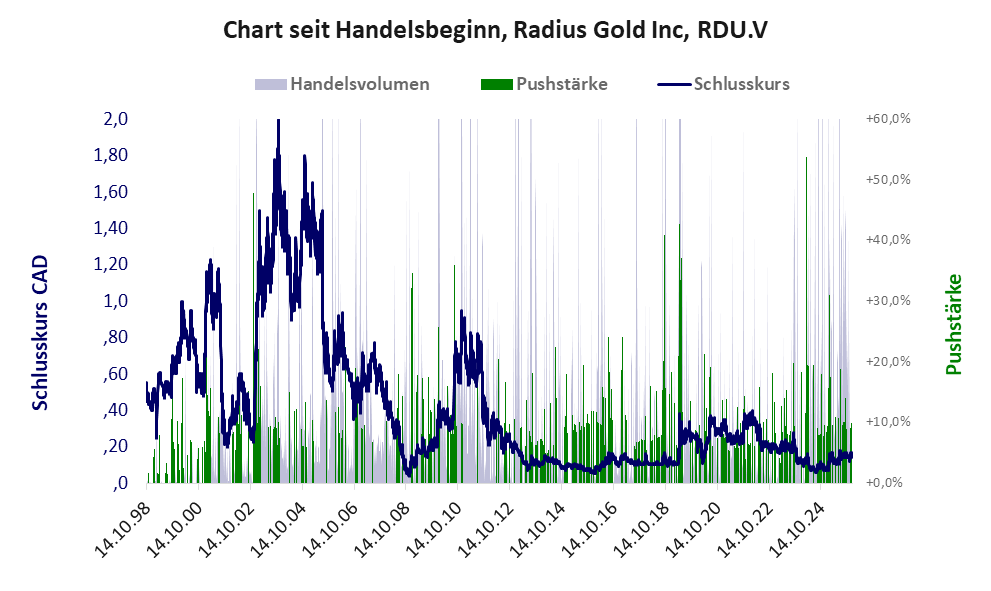 Radius Gold ist ein Winzling mit einer Muell-Aktie der Klasse V und den Eckdaten: