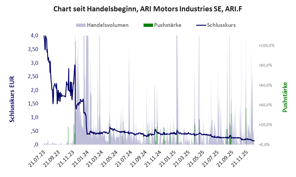 ARI Motors lebt wohl nur (noch) vom Image der Elektromobilität. Wie lange dies noch reichen wird, ist anlässlich der miserablen finanziellen Daten ungewiss. Der Kursverlauf spricht eine eindeutige Sprache.