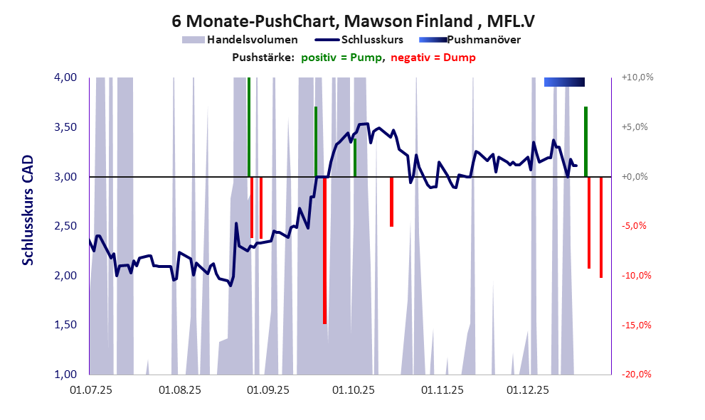 Die Pushstärke ist umso höher, je stärker die Kurse vom durchschnittlichen Verlauf abweichen und daher ein Verdacht auf Kursmanipulation besteht.