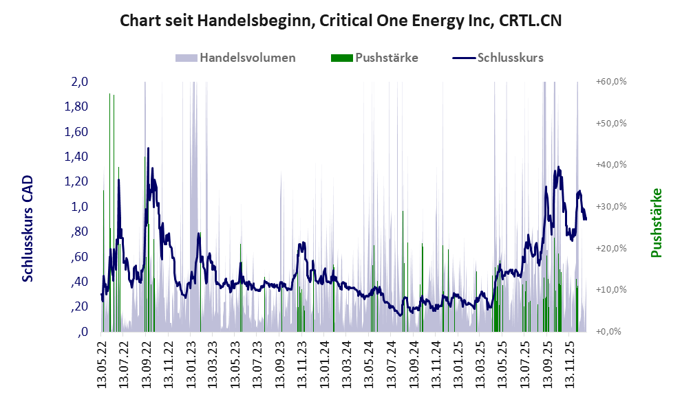 Was am Aktienkurs des wertlosen Unternehmens auffällt, ist der konsequent betriebene Aufwuchs des Kurses in zwei Etappen im Jahr 2025. Da fundamentale Daten dafür nicht den geringsten Anlass als Erklärung geben, darf man gespannt sein, wie der weitere Verlauf gestaltet und wann das Inkasso erfolgen wird.