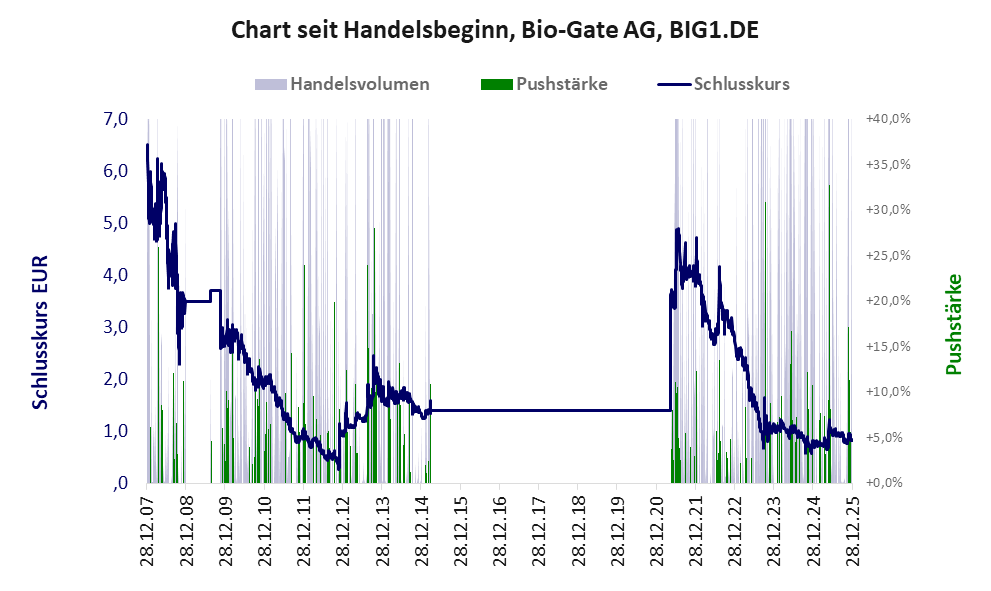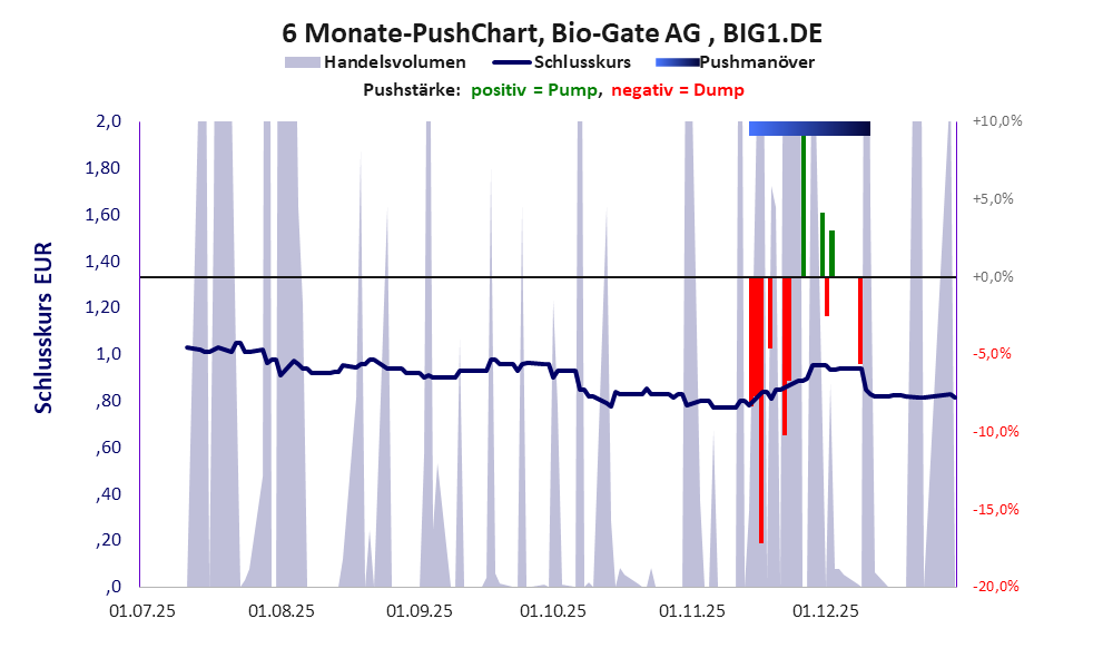 GBC bewertete die Aktie im Auftrag von Bio-Gate zum wiederholten Mal mit einer Kaufempfehlung, wodurch der Kurs um 70% stieg. Der Push ist vorbei, der Kurs sank bereits wieder um 17%. Das Scoring ist nicht dazu angetan, an die Stärke der Aktie zu glauben. *** Bei dieser Aktie liegt das „Inkassomodell“ vor.