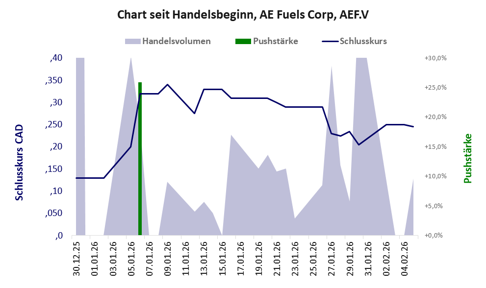 Das tägliche Handelsvolumen während der letzten drei Monate (bis Berichtsdatum) betrug 17.449 Stück, das sind 0,0% der ausgegebenen Aktien. Die Kurshistorie dieser Aktie fehlt seit dem Start am 09.05.22 bis zum Relaunch am 30.12.25.
