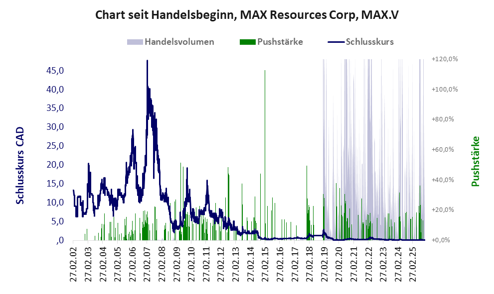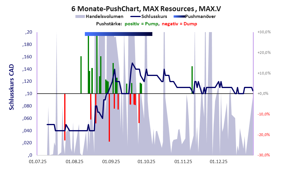 Mickriger Pennystock, erfolgloses Unternehmen mit schlechtem Scoring und häufigen, schwachen Pushmanövern.