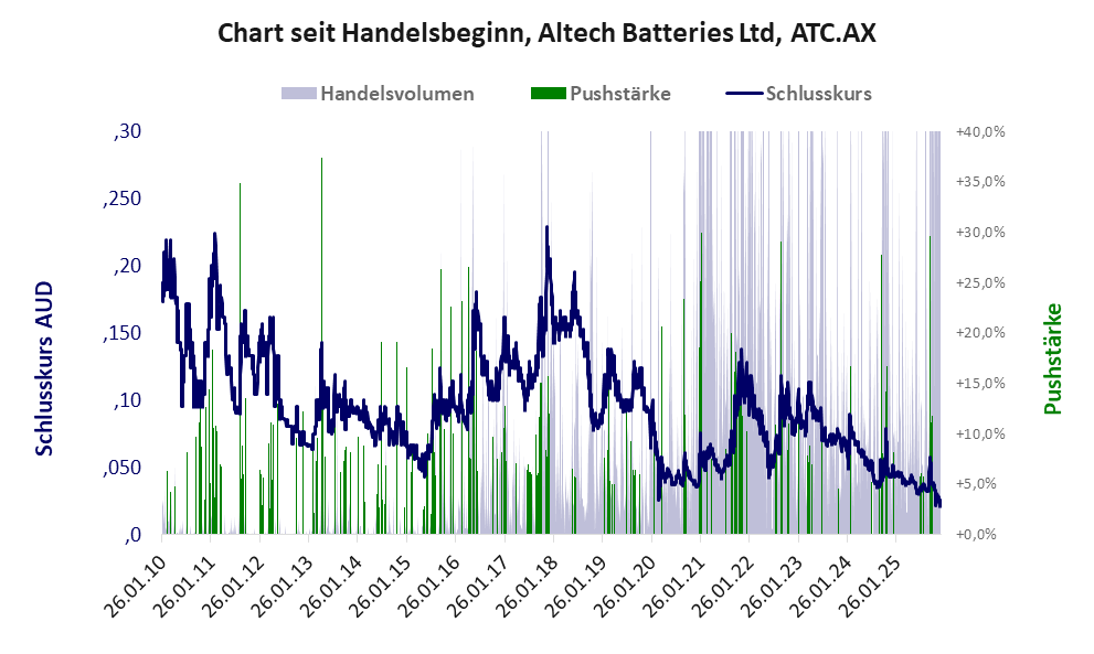 Die Risiken bei der ertragslosen und kleinen Altech Batteries und der Tochter Altech Advanced Materials sind nicht zu übersehen. *** Dieser Aktie liegt das „Refreshmodell“ zu Grunde. Eine Durchsicht aller Geschäftsberichte würde recht sicher zeigen, dass das Unternehmen nie Umsatz und Profit erzielte und die gesamten Explorationskosten unter „Aktiva“ verbuchte. Das heißt, während aller Jahre wurde nichts gefunden, sondern die Investorengelder wurden für erfolglose Explorationsarbeiten verbrannt. Die bescheidene Exploration dient lediglich als Grundlage zur medialen Vermarktung von Erfolgsaussichten, auf eine große Lagerstätte zu stoßen, um damit das nächste Pushmanöver zu befeuern.