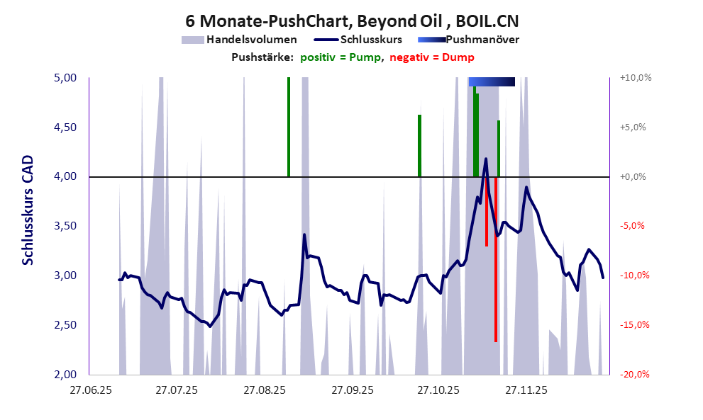 Die Pushstärke ist umso höher, je stärker die Kurse vom durchschnittlichen Verlauf abweichen und daher ein Verdacht auf Kursmanipulation besteht.