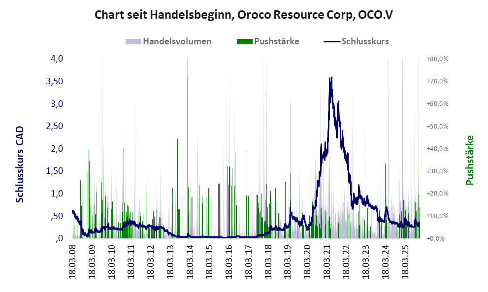 Oroco Resource ist ein kmU mit einer Muell-Aktie der Klasse V und den Eckdaten: