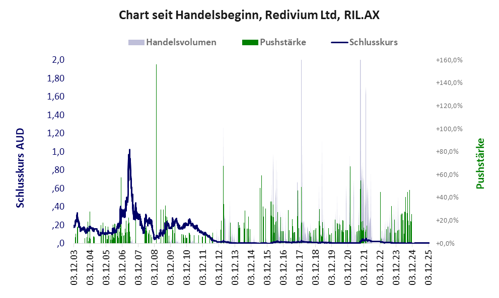 zeigt <abbr class='c2c-text-hover' title='bei einem Pushmanöver treiben Akteure und Medien den Aktienkurs manipulativ kurzfristig zum eigenen Vorteil nach oben.'>Pushmanöver</abbr> während der letzten sechs Monate