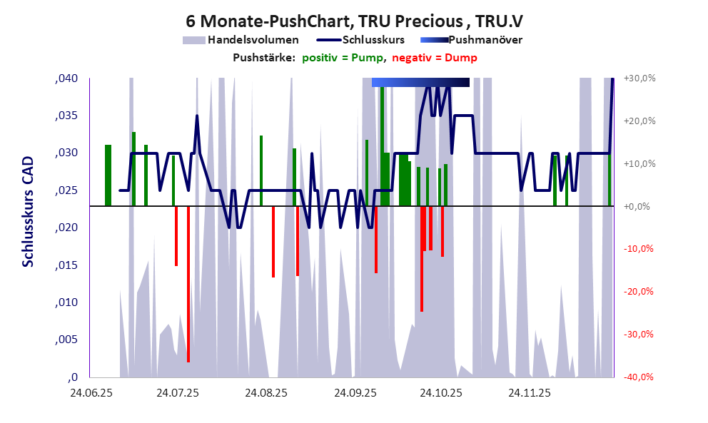 TRU Precious ist ein Winzling mit einer Muell-Aktie der Klasse V und den Eckdaten: