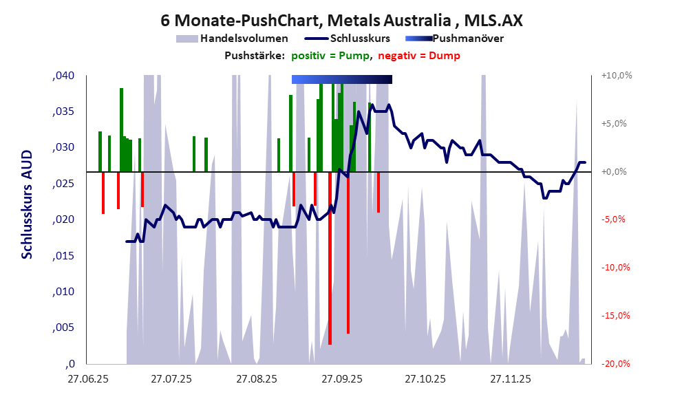 zeigt <abbr class='c2c-text-hover' title='bei einem Pushmanöver treiben Akteure und Medien den Aktienkurs manipulativ kurzfristig zum eigenen Vorteil nach oben.'>Pushmanöver</abbr> während der letzten sechs Monate