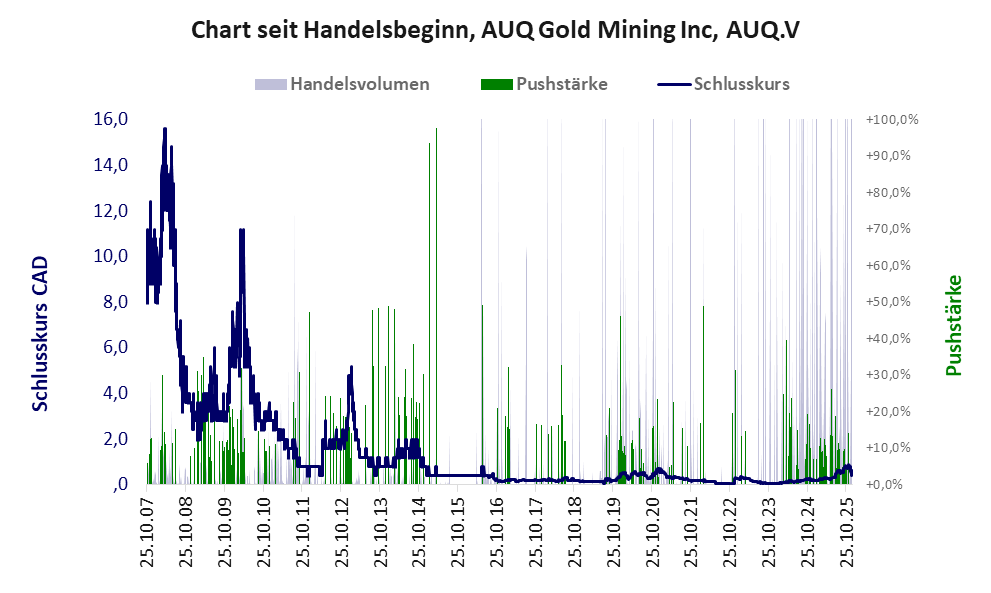 AUQ Gold ist ein Habenichts mit einer Muell-Aktie der Klasse V und den Eckdaten: