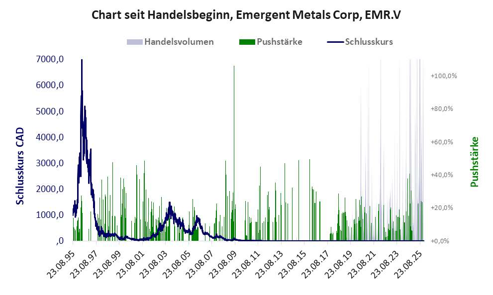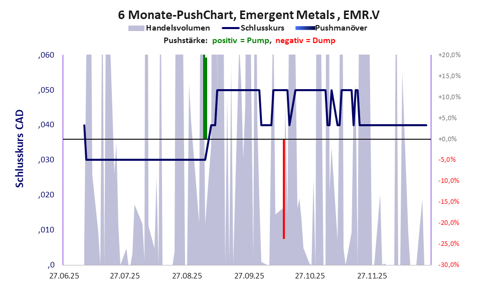 Von Aktiencheck gepushter Müllkübel. Bei dieser Aktie liegt das „Inkassomodell“ vor, bei dem der Aktienkurs zu Beginn der Geschichte sein Allzeithoch hat. Die Akteure verkaufen schon zu Beginn nach und nach ihre billigst erworbenen Aktien, so dass der Kurs in verhältnismäßig kurzer Zeit abstürzt. Danach dümpelt der Aktienkurs in den meistn Fällen nahe null dahin und die Aktie dient nur noch kleineren, dennoch gewinnbringenden Pushmanövern und in vielen Fällen dem Algotrading. Dem ersten Einbruch nachfolgende größere Pushmanöver sind aber nicht ausgeschlossen.