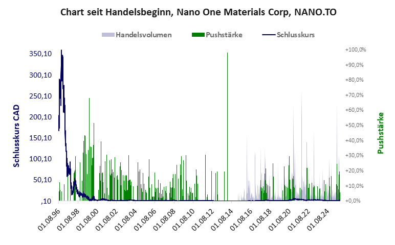 Vor langer Zeit mit großen Erwartungen gestartet, schwer abgestürzt und noch immer in den roten Zahlen. Die Firma kommt nicht in die Gänge, stattdessen erfolgt Kurspflege. Nano One hat ein kritisches Gesamtscoring und ist eine billige Aktie mit praktisch einem Totalverlust. Das Gesamtvermögen ist überschaubar, die Vermögenswerte scheinen sehr werthaltig zu sein, der Umsatz ist nicht existent, die Ertragslage extrem verlustreich, die Geldverbrennung extrem hoch.