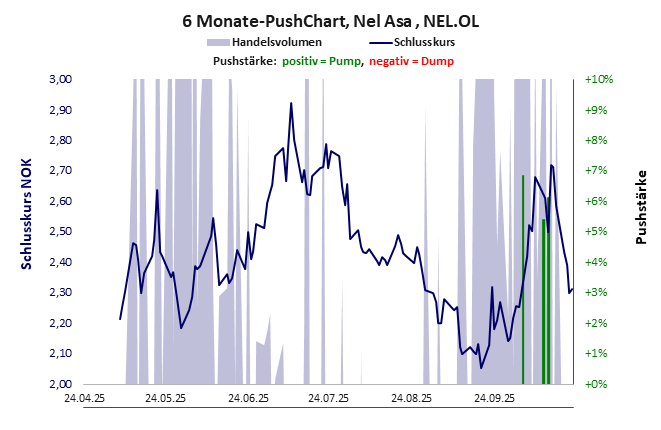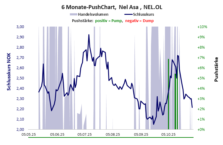 Die Pushstärke ist ein Maß, wie stark der Handelskurs der jüngsten Zeit vom Durchschnitt der Vergangenheit abweicht, und belegt somit Pushaktivitäten