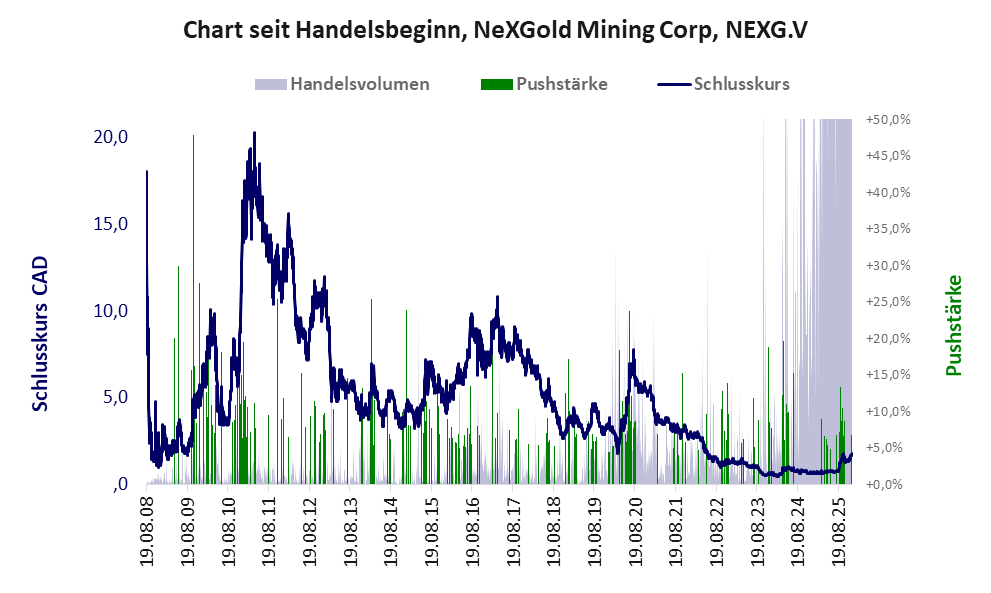 NeXGold Mining ist ein Unternehmen mit einer Muell-Aktie der Klasse V und den Eckdaten:
