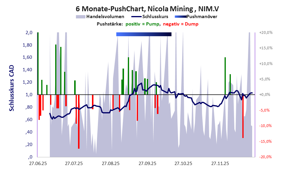 zeigt <abbr class='c2c-text-hover' title='bei einem Pushmanöver treiben Akteure und Medien den Aktienkurs manipulativ kurzfristig zum eigenen Vorteil nach oben.'>Pushmanöver</abbr> während der letzten sechs Monate