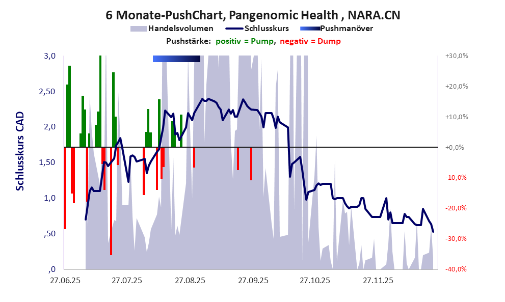 Pangenomic Health dient nur zum Aktienpushing! Einen riesigen Pusherfolg hatte die Aktie bereits Anfang 2022, der nach Schätzrechnung 16 Mio. CAD eingebracht haben könnte. Aktuell folgt ein weiteres Pushmanöver, begleitet durch Werbung von Apaton – und es funktioniert offenbar mit großem Erfolg! Bei dieser Aktie vollzogen die Akteure mindestens einen Pump & Dump und leerten damit ganz gezielt die Taschen der Anleger. Obwohl das Vorgehen rechtswidrig ist, erfolgt kaum je eine Strafverfolgung.
