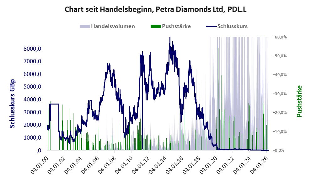 Petra Diamonds ist ein Konzern mit einer Muell-Aktie der Klasse IV und den Eckdaten: