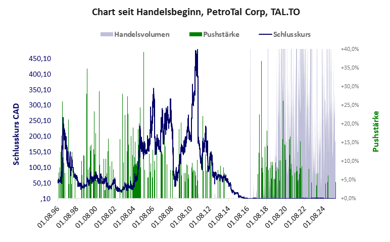 PetroTal Corp hat ein mäßiges Gesamtscoring und ist ein Pennystock mit praktisch einem Totalverlust. Das Gesamtvermögen ist sehr groß, die Vermögenswerte scheinen sehr werthaltig zu sein, der Umsatz ist sehr groß, die Ertragslage gut, die Geldverbrennung erträglich.
