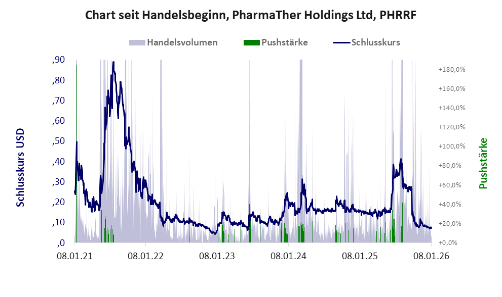 PharmaTher Holdings ist ein Winzling mit einer Muell-Aktie der Klasse V und den Eckdaten: