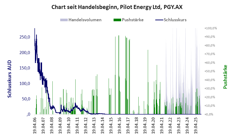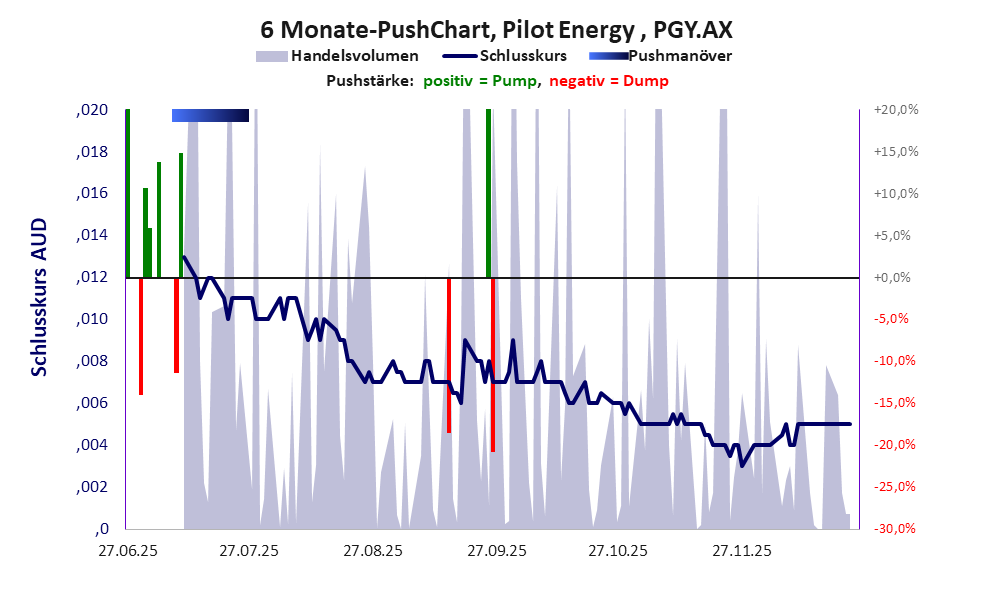 Bei dieser Aktie liegt das „Inkassomodell“ vor, bei dem der Aktienkurs zu Beginn der Geschichte sein Allzeithoch hat. Die Akteure verkaufen schon zu Beginn nach und nach ihre billigst erworbenen Aktien, so dass der Kurs in verhältnismäßig kurzer Zeit abstürzt. Danach dümpelt der Aktienkurs in den meistn Fällen nahe null dahin und die Aktie dient nur noch kleineren, dennoch gewinnbringenden Pushmanövern und in vielen Fällen dem Algotrading. Dem ersten Einbruch nachfolgende größere Pushmanöver sind aber nicht ausgeschlossen. Bei dieser Aktie vollzogen die Akteure mindestens einen Pump & Dump und leerten damit ganz gezielt die Taschen der Anleger. Obwohl das Vorgehen rechtswidrig ist, erfolgt kaum je eine Strafverfolgung.