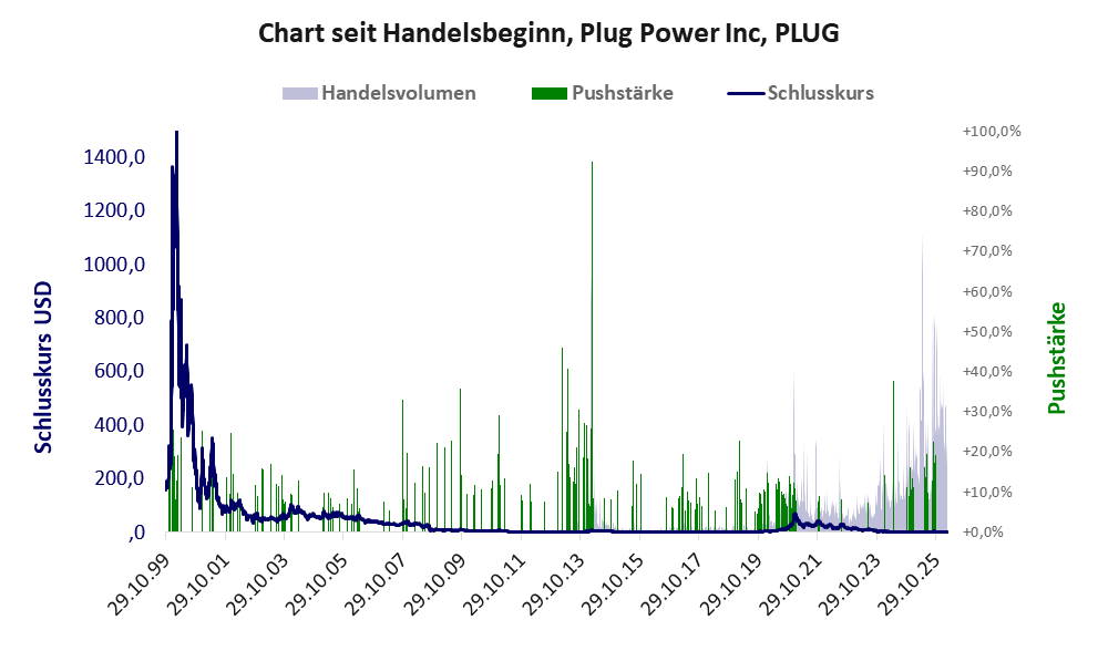 Der Aktienkurs raste zu Beginn durch den Hydrogen-Hype hoch, um ebenso rasant abzustürzen. Seit einiger Zeit kämpft die Aktie, um kein Pennystock zu werden. Daran änderte auch der Push im Oktober 2025 nichts.