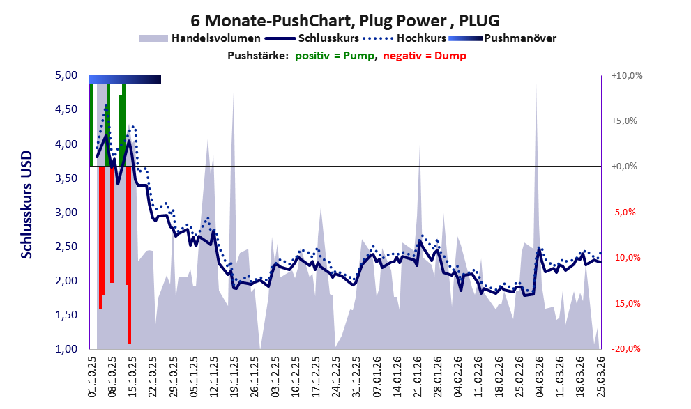 Bei dieser Aktie, über die Apaton berichtet, gibt es 1 Pump & Dump-Manöver. Das tägliche Handelsvolumen betrug an obiger Börse während der letzten drei Monate bis Berichtsdatum: 95.191.661 Stück, das sind 6,8% der ausgegebenen Aktien. Die hohe Geldverbrennung in der Investitionsphase von Plug Power hat sich gelohnt. Die Produktion wurde aufgenommen, ist aber noch unprofitabel.