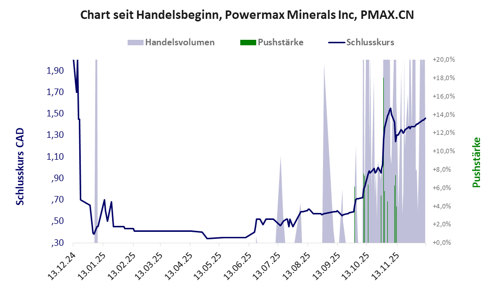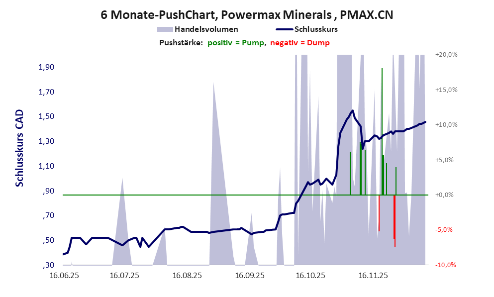 Die Pushstärke ist ein Maß, wie stark der Handelskurs der jüngsten Zeit vom Durchschnitt der Vergangenheit abweicht, und belegt somit Pushaktivitäten