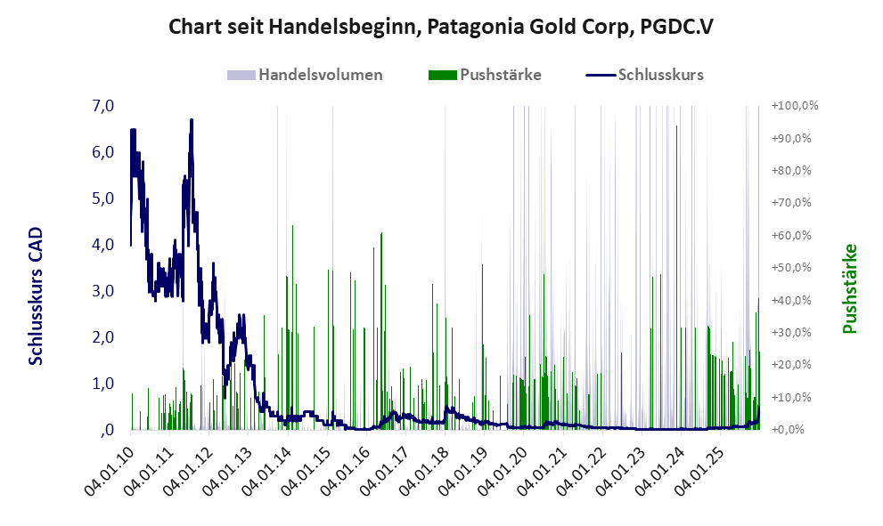 Patagonia Gold ist ein kmU mit einer Pusher-Aktie der Klasse II und den Eckdaten:
