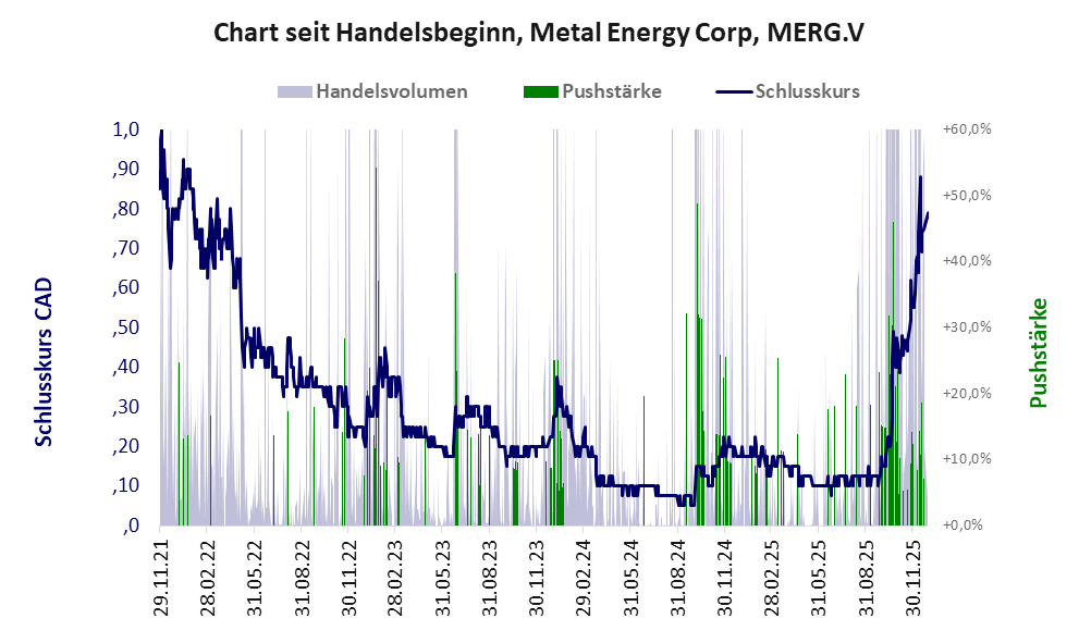 Metal Energy ist ein Winzling mit einer Pusher-Aktie der Klasse III und den Eckdaten: