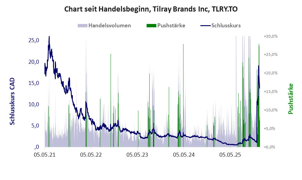 Tilray Brands ist ein Konzern mit einer Pusher-Aktie der Klasse II und den Eckdaten:
