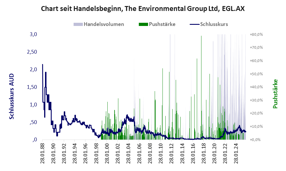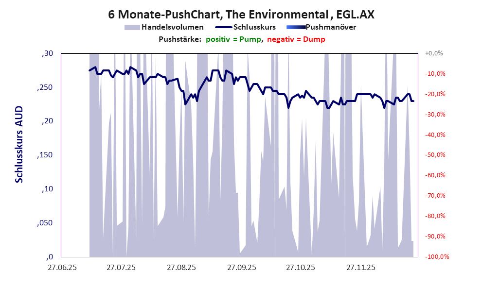 Bei dieser Aktie liegt das „Inkassomodell“ vor, bei dem der Aktienkurs zu Beginn der Geschichte sein Allzeithoch hat. Die Akteure verkaufen schon zu Beginn nach und nach ihre billigst erworbenen Aktien, so dass der Kurs in verhältnismäßig kurzer Zeit abstürzt. Danach dümpelt der Aktienkurs in den meistn Fällen nahe null dahin und die Aktie dient nur noch kleineren, dennoch gewinnbringenden Pushmanövern und in vielen Fällen dem Algotrading. Dem ersten Einbruch nachfolgende größere Pushmanöver sind aber nicht ausgeschlossen.