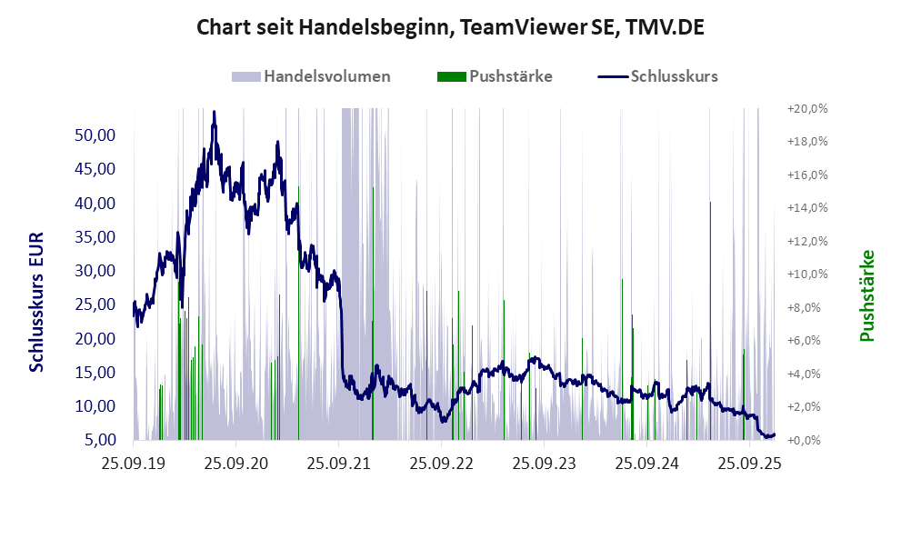 TeamViewer SE ist ein Konzern mit einer Pusher-Aktie der Klasse II und den Eckdaten: