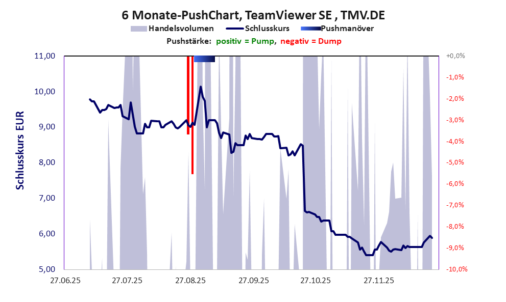 Die Pushstärke ist umso höher, je stärker die Kurse vom durchschnittlichen Verlauf abweichen und daher ein Verdacht auf Kursmanipulation besteht.