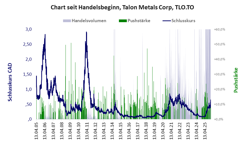 Dieser Aktie liegt das „Refreshmodell“ zu Grunde. Eine Durchsicht aller Geschäftsberichte würde recht sicher zeigen, dass das Unternehmen nie Umsatz und Profit erzielte und die gesamten Explorationskosten unter „Aktiva“ verbuchte. Das heißt, während aller Jahre wurde nichts gefunden, sondern die Investorengelder wurden für erfolglose Explorationsarbeiten verbrannt. Die bescheidene Exploration dient lediglich als Grundlage zur medialen Vermarktung von Erfolgsaussichten, auf eine große Lagerstätte zu stoßen, um damit das nächste Pushmanöver zu befeuern.