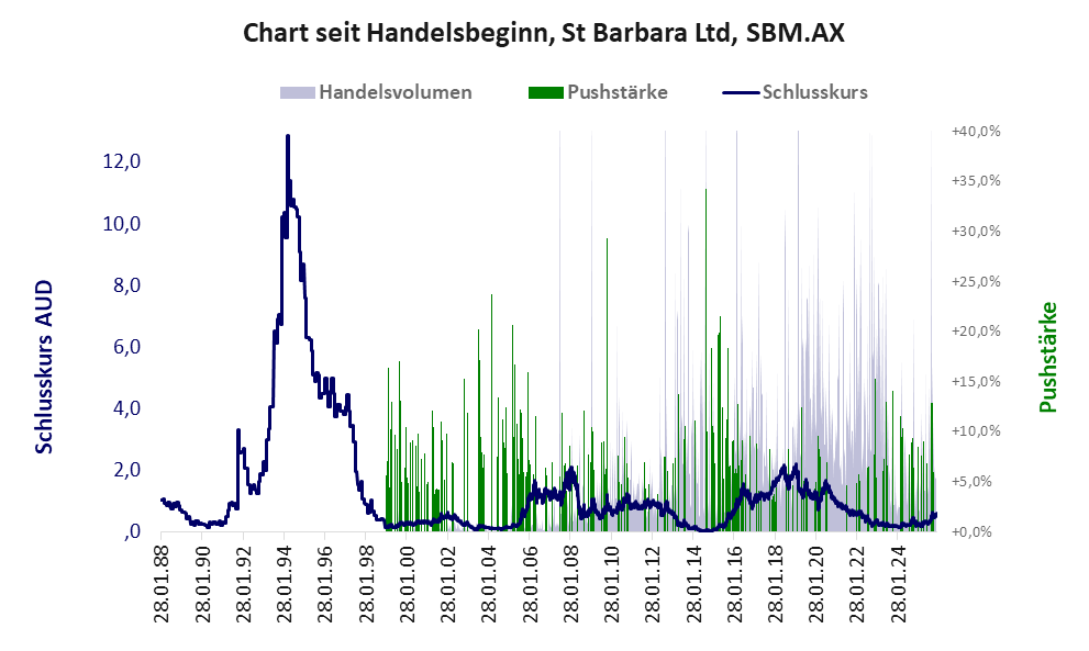 St Barbara ist ein Unternehmen mit einer Pusher-Aktie der Klasse II und den Eckdaten: