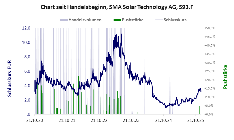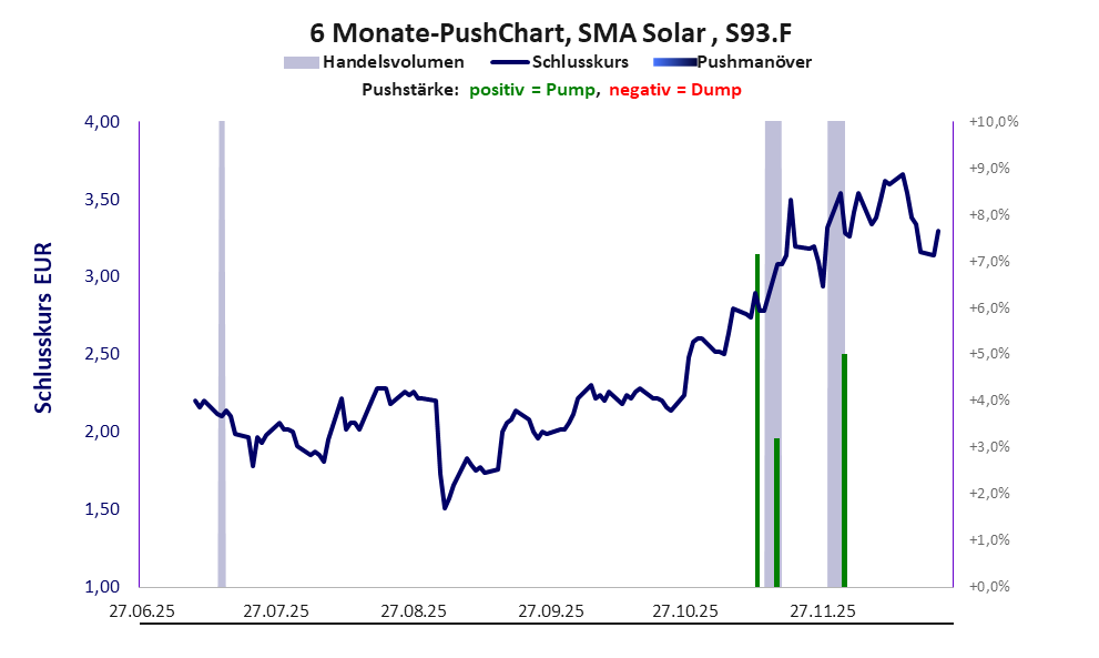 Die Pushstärke ist umso höher, je stärker die Kurse vom durchschnittlichen Verlauf abweichen und daher ein Verdacht auf Kursmanipulation besteht.