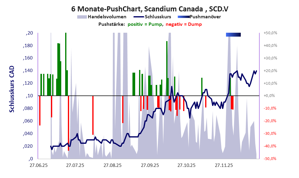 Bei dieser Aktie liegt das „Inkassomodell“ vor, bei dem der Aktienkurs zu Beginn der Geschichte sein Allzeithoch hat. Die Akteure verkaufen schon zu Beginn nach und nach ihre billigst erworbenen Aktien, so dass der Kurs in verhältnismäßig kurzer Zeit abstürzt. Danach dümpelt der Aktienkurs in den meistn Fällen nahe null dahin und die Aktie dient nur noch kleineren, dennoch gewinnbringenden Pushmanövern und in vielen Fällen dem Algotrading. Dem ersten Einbruch nachfolgende größere Pushmanöver sind aber nicht ausgeschlossen. Bei dieser Aktie vollzogen die Akteure mindestens einen Pump & Dump und leerten damit ganz gezielt die Taschen der Anleger. Obwohl das Vorgehen rechtswidrig ist, erfolgt kaum je eine Strafverfolgung.