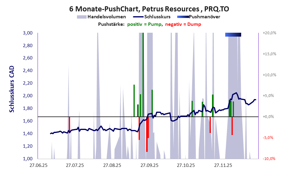Die Pushstärke ist umso höher, je stärker die Kurse vom durchschnittlichen Verlauf abweichen und daher ein Verdacht auf Kursmanipulation besteht.